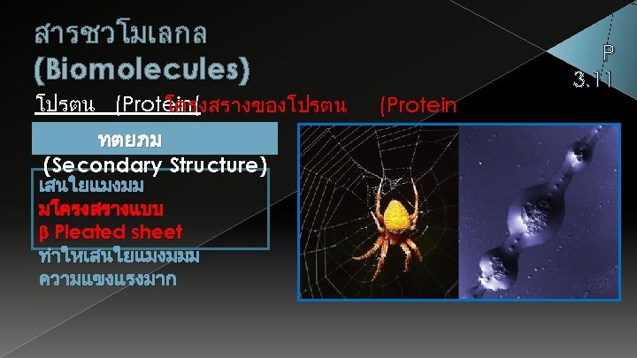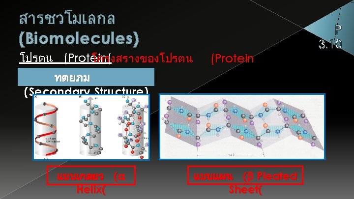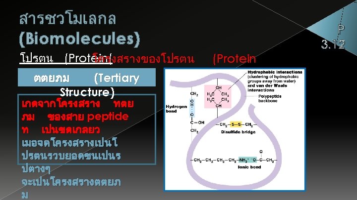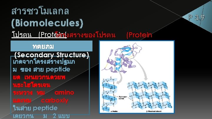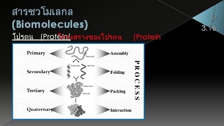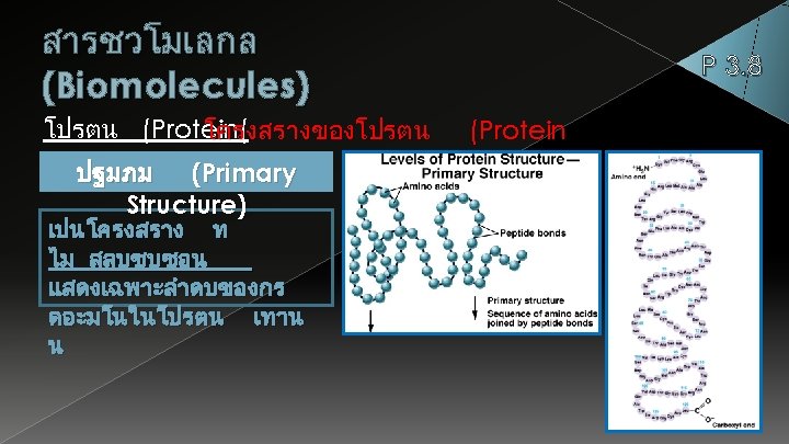 สารชวโมเลกล (Biomolecules) โปรตน (Protein( โครงสรางของโปรตน Structure) ตตยภม (Tertiary Structure) มกเจอ ใน 2 รปแบบดงน Globular Protein Fibrous Protein (Protein P 3. 13