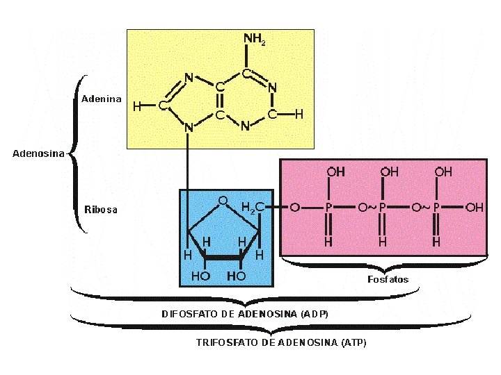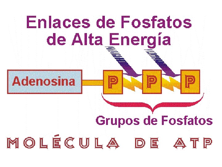 ADENOSINA DE TRIFOSFATO (ATP) Estructura Consiste en un Gran Complejo de Moléculas, Llamada Adenosina y Tres Componentes más Simples, Los Grupos de Fosfatos. Estos Últimos Representan Enlaces de Alta Energía