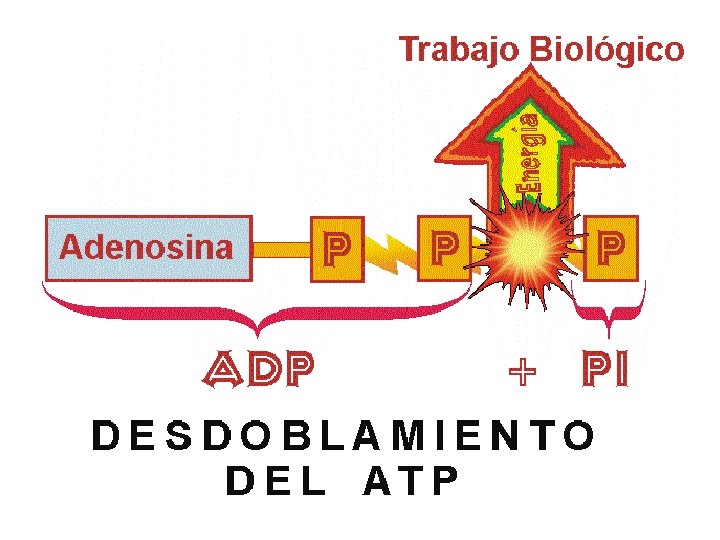 ADENOSINA DE TRIFOSFATO (ATP) Mecanismo para que el ATP Produzca Energía Cuando se Rompe el Enlace Terminal del Fosfato, se Emite Energía (7 -12 Kcal), lo cual Permite que se Realice Trabajo “Biológico”.
