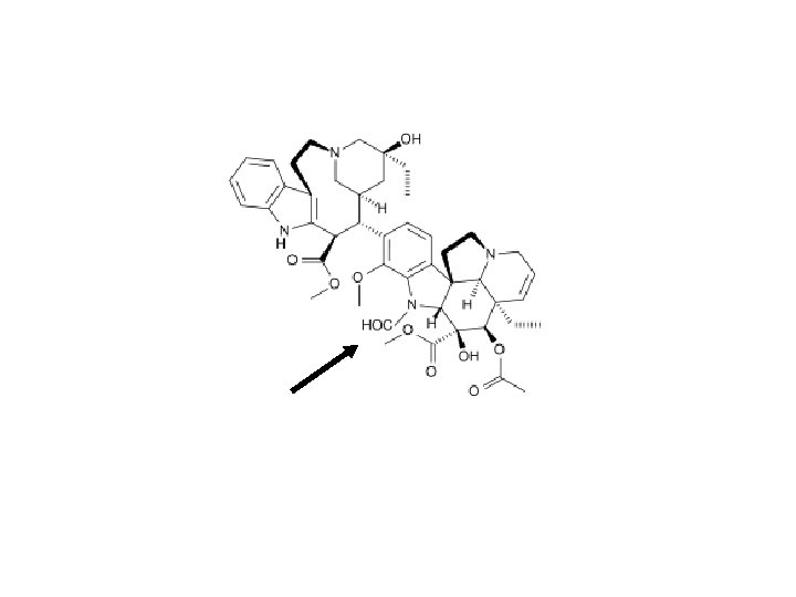 ØStructures: • Vinblastine (Vincaleukoblastine) is produced by coupling of Catharanthine and Vindoline. • Vincristine (leurocristine) has CHO istead of CH 3 in the vindoline part of Vinblastine.