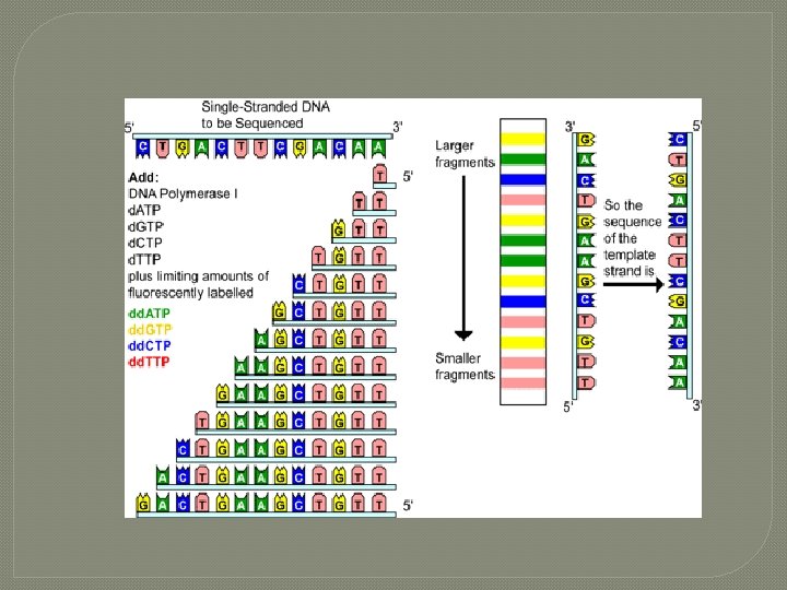 Dideoxy Chain Termination �method used to sequence relatively short DNA fragments �done by automated sequencing machines