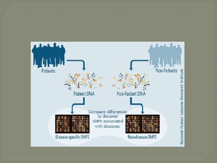 Genome-Wide Association Studies �used to analyze genomes of large #s of humans with certain phenotype or disease �test for genetic markers: DNA sequences that vary in a population • uses SNPs (single nucleotide polymorphisms) • single base pair site where variation is found in at least 1% of population • few million in human genome