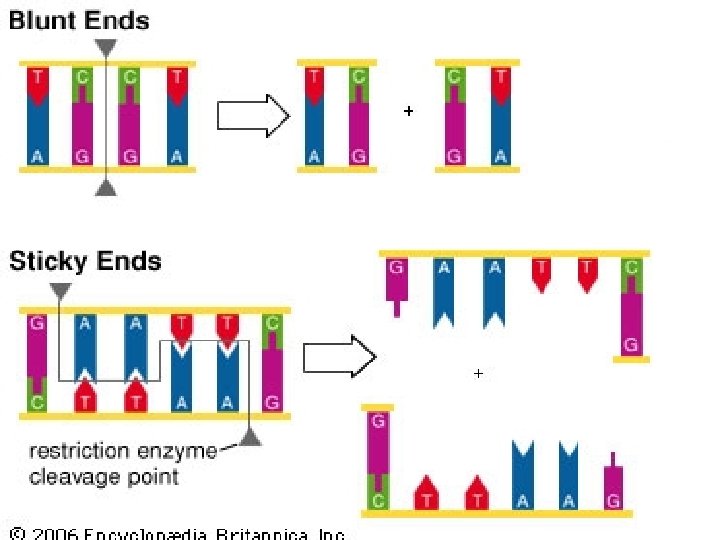 Restriction Sites n Many different kinds of restriction enzymes with different names n n n Eco. RI, Bam. HI, Hind. III, Hae. III, etc. Restriction site is like a palindrome n A palindrome is a word or phrase which reads the same in both directions. These enzymes make “blunt” and “sticky” ends. n What is the difference?