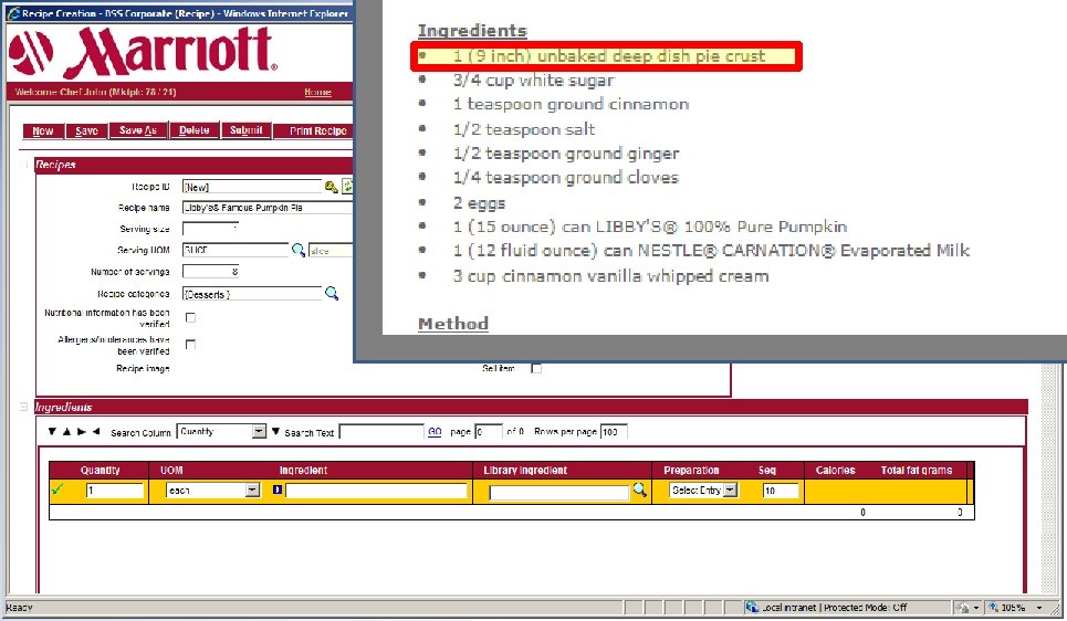 The Recipe Tabs… Form Ingredients: Free Form Ingredients Ingredient Library: Free Search and View Ingredients are ingredients not yetnew linked to the Ingredient (Global and Property Level). Create Library. Usetothis tab toitems view them ingredients. Link ingredients supplier for and mass-link them to the library. costing and purchasing. (needed for this pilot)