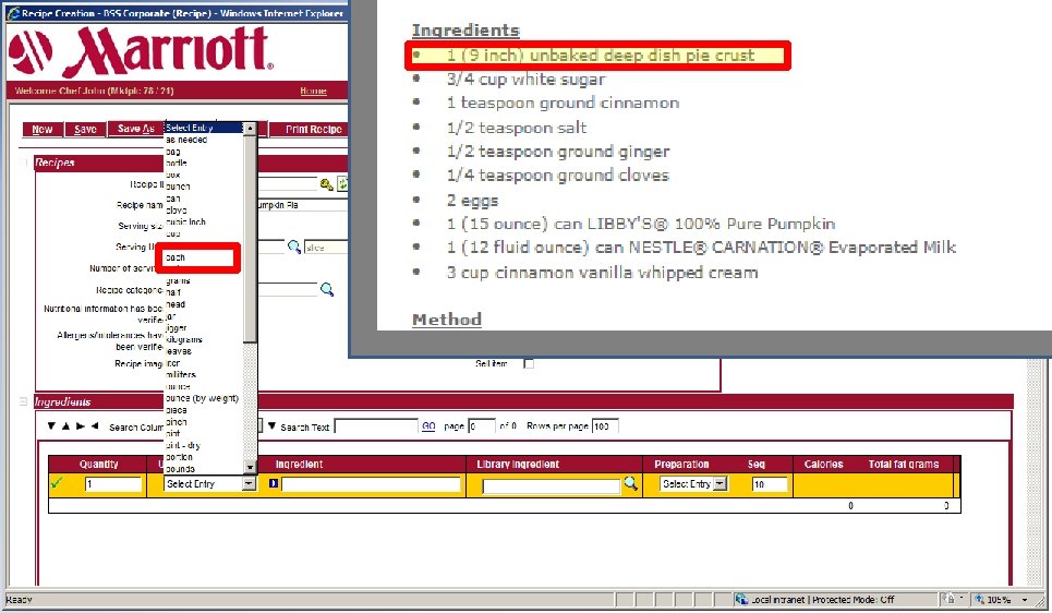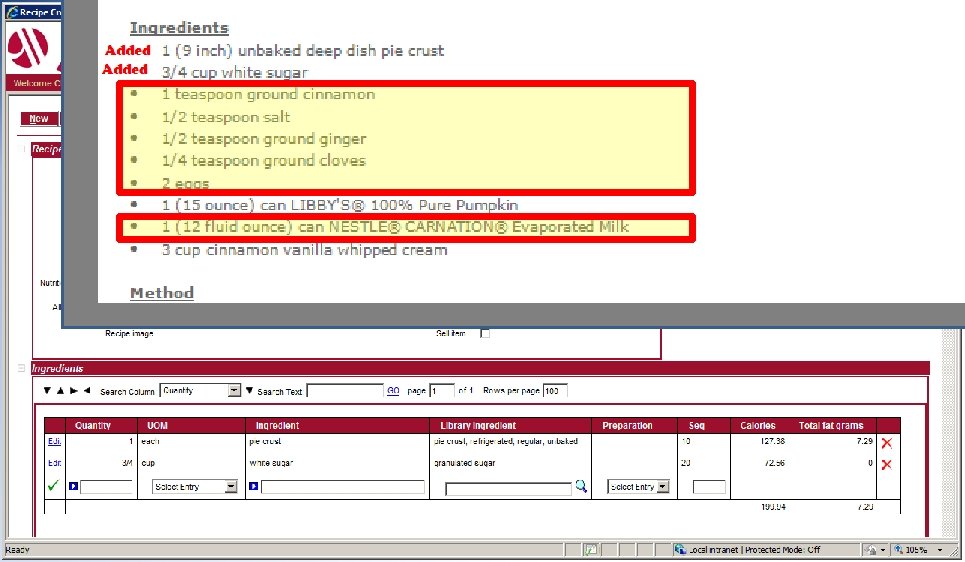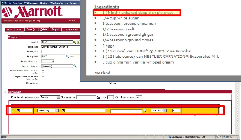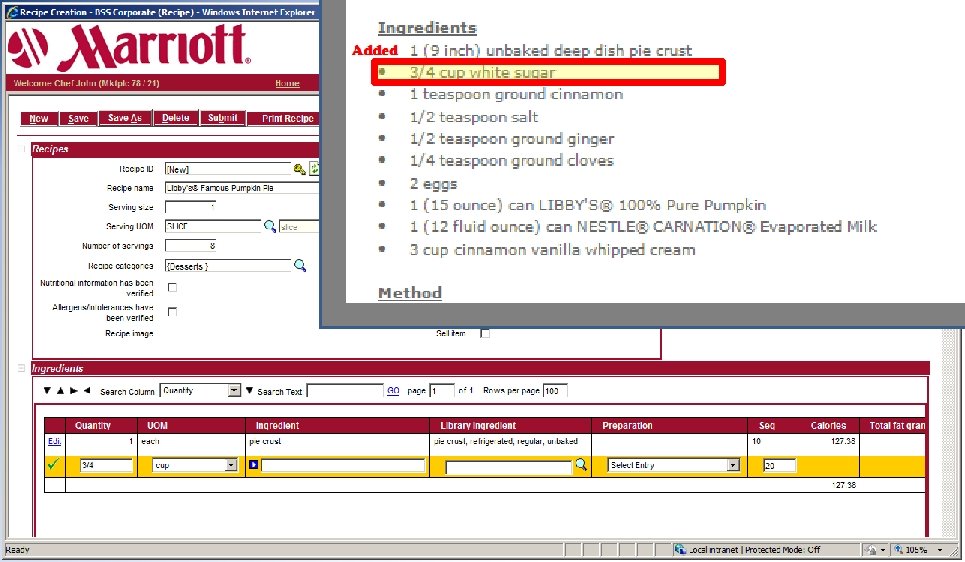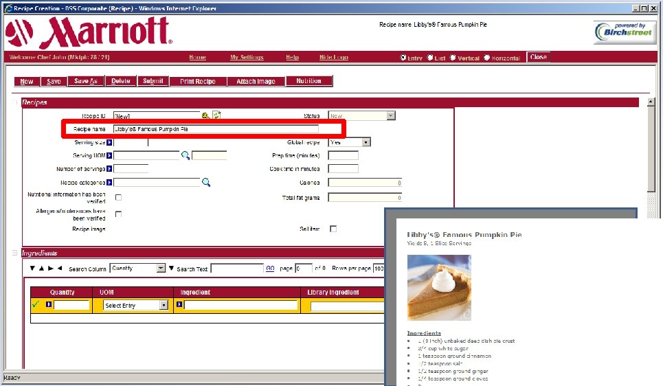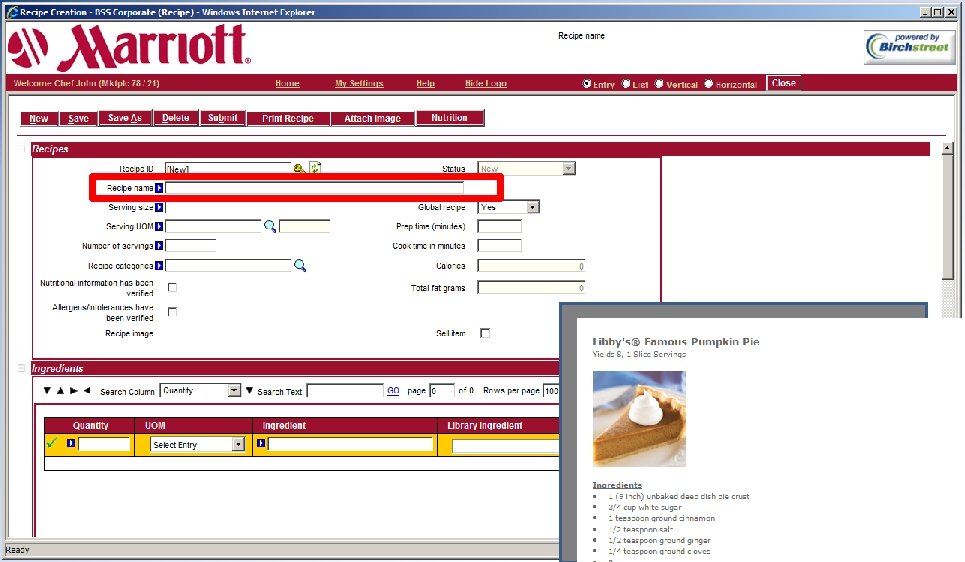 The Recipe Tabs… Form Ingredients: Free Form Ingredients Ingredient Library: Free Search and View Ingredients are ingredients not yetnew linked to the Ingredient (Global and Property Level). Create Library. Usetothis tab toitems view them ingredients. Link ingredients supplier for and mass-link them to the library. costing and purchasing. (needed for this pilot)