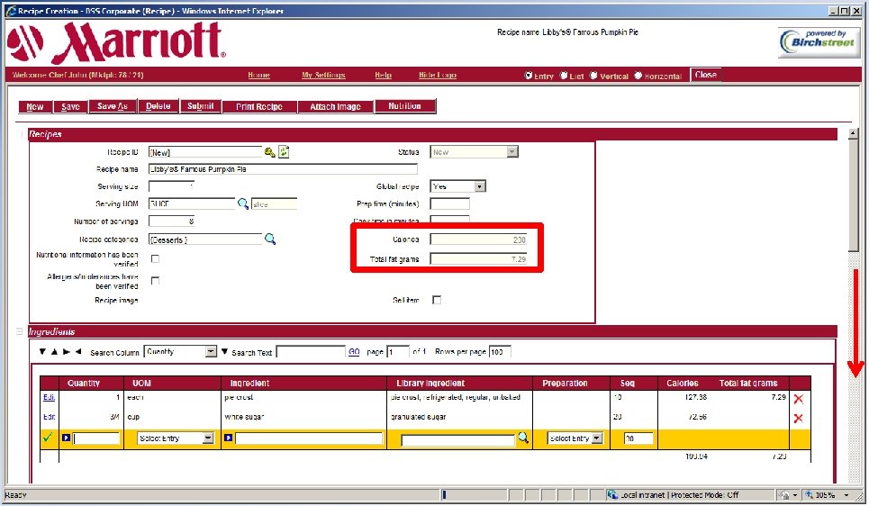 Before finishing up the The system can now recipe, review the rest of calculate the Calories your ingredients