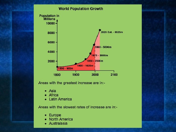 When a country's population grows quickly it has the following effects: ・The large number of young people have to have services e. g. schools provided for them ・There are fewer older people, so less money needs to be spent on them ・There is a relatively small proportion of adults of working age; these people provide the wealth for the services ・There is pressure on the countryside with the extra population to feed; this can result in overgrazing, over cropping and soil erosion ・People move to the cities to find work; developing countries with rapidly growing populations have the fastest growing cities in the world ・Shanty towns grow up on the edge of cities; these are selfconstructed buildings of poor quality which can lack vital services such as water, electricity and sanitation ・Some people apply to migrate to developed countries in order to improve their standard of living.