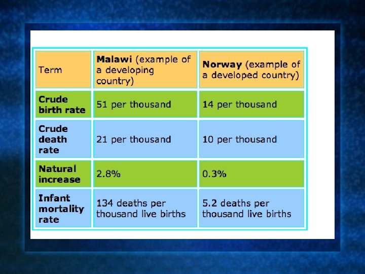 Birth Rate Death Rate Natural Increase 1 dot
