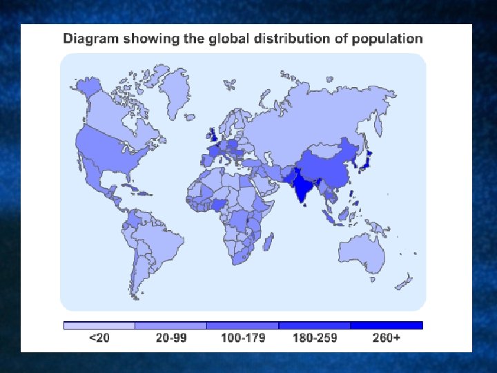 The factors that tend to produce low population densities are: ・Extreme climate - too cold, hot, wet or dry ・Extreme relief - too high and too steep ・Extreme remoteness - places that are difficult to reach ・Infertile land - need to have extensive (very large) farms