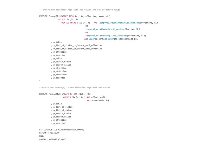 Future work • • Bitemporal foreign keys full support Finalizing low-level functions Using in the real apps Conversion to C.