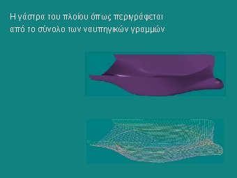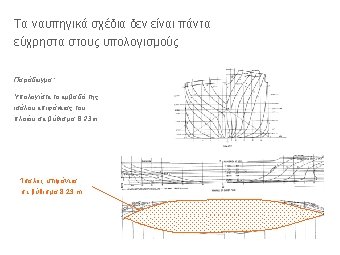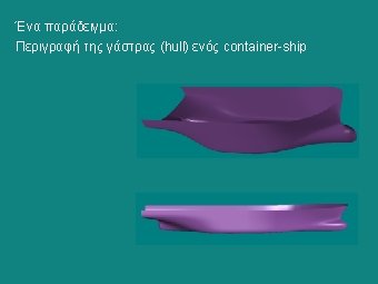 Ένα παράδειγμα: USS Oliver Hazard Perry (FFG-7) Class Frigate Hull form characteristics: LOA = 453 ft LPP = 408 ft T= 14, 35 ft B= 45, 17 ft CP = 0, 594 CM = 0, 745 Displ = 3345 LT SW (at section of maximum area) (bare hull to DWL)