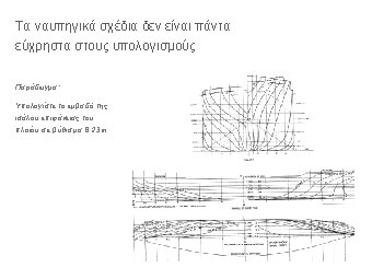 Οι βασικές διαστάσεις ενός πλοίου LOA DWL BL LWL Base. Line (BL) Length Over. All (LOA) Design Water. Line (DWL) Length of design Water. Line (LWL) Forward and Aft Perpendiculars (FP, AP) Length Between Perpendiculars (LBP or LPP)
