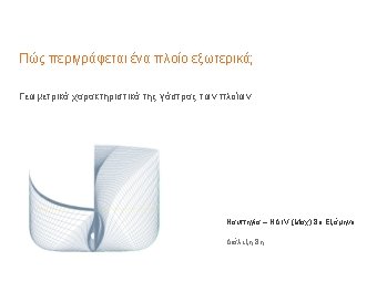Οι βασικές διαστάσεις ενός πλοίου LOA DWL BL AP Base. Line (BL) Length Over. All (LOA) Design Water. Line (DWL) Length of design Water. Line (LWL) Forward and Aft Perpendiculars (FP, AP) FP
