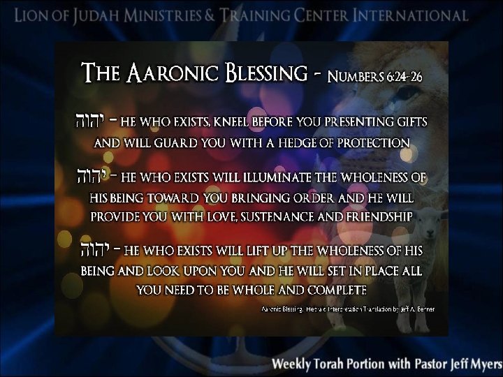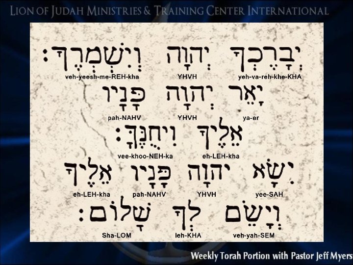 Response: (The Priestly Blessing) MAY YHVH GRANT ALL THE DESIRES OF OUR HEARTS. FULFILL ALL OUR PURPOSES AND ALL OUR PETITIONS MAY YHVH HEAR FROM HEAVEN, QUICKLY ANSWER ALL OUR REQUESTS, AND SAVE US IN THE DAY OF ADVERSITY. IN THE NAME OF YAHSHUA, THE MESSIAH, DEFEND US FROM OUR ENEMIES, FROM POVERTY AND FROM BONDAGE. SHABBAT SHALOM