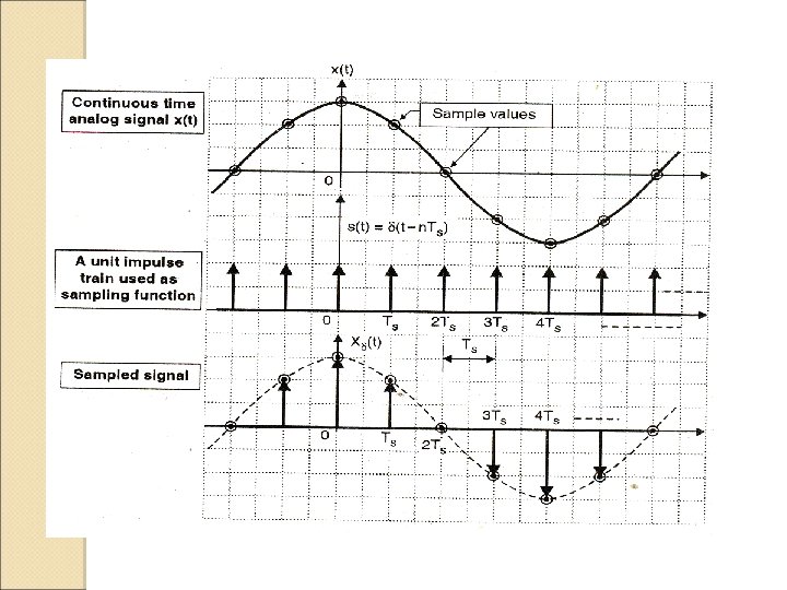 Pulse Amplitude Modulation (PAM): The signal is sampled at regular intervals such that each sample is proportional to the amplitude of the signal at that sampling instant Types of PAM: 1. Natural PAM 2. Flat top PAM Analog Signal Amplitude Modulated Pulses