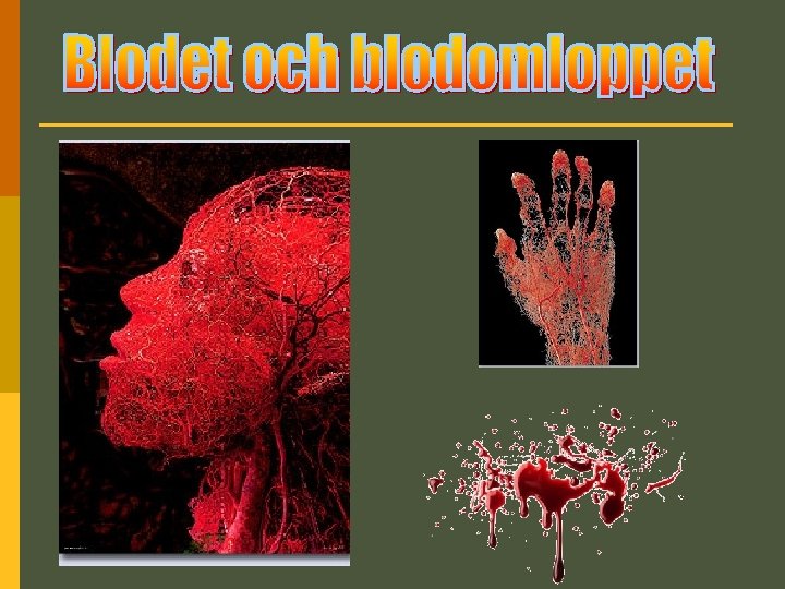 Blodets uppgifter i kroppen: • Transportera syre och koldioxid • Skicka runt näringsämnen från tarmarna • Ta hand om cellernas avfall • Skicka runt hormoner i kroppen • Försvara kroppen mot infektioner • Hålla rätt temp på kroppen