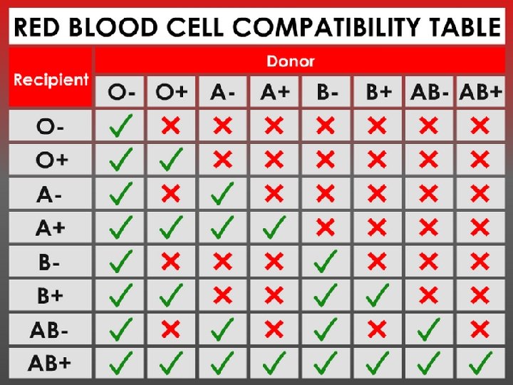 But really, there are eight possible blood types, because of something called the Rh Factor! This tells you whether you are positive (+) or negative ( ). Rh Present = (+) Rh Not Present = ( )