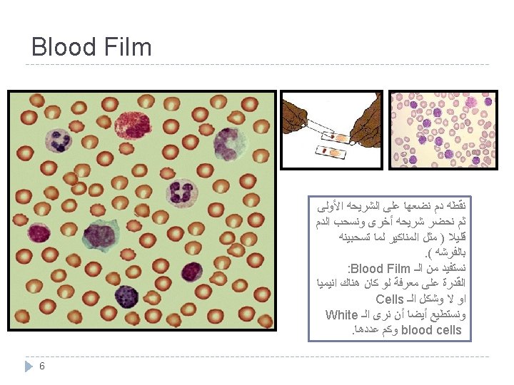 Characteristics of Blood Plasma osmotic pressure: Specific gravity: Erythrocyte sedimentatio n rate (ESR) 5 • Is 300 mmol/L or 770 k. Pa • Crystal osmotic pressure: results from Na. Cl and modulates water distribution between inside and outside cells. • Colloid osmotic pressure: results from albumin and regulates water distribution between inside and outside of capillaries. • Total blood: (1. 050 -1. 060) more influenced by RBC. • Plasma: (1. 025 -1. 030) more influenced by plasma protein. • RBC: (1. 090 -1. 092) more influenced by hemoglobin. • It the red blood cell descending distance per hour. • Normal male 0¬ 15 mm/h. • Normal Female 0¬ 20 mm/h.