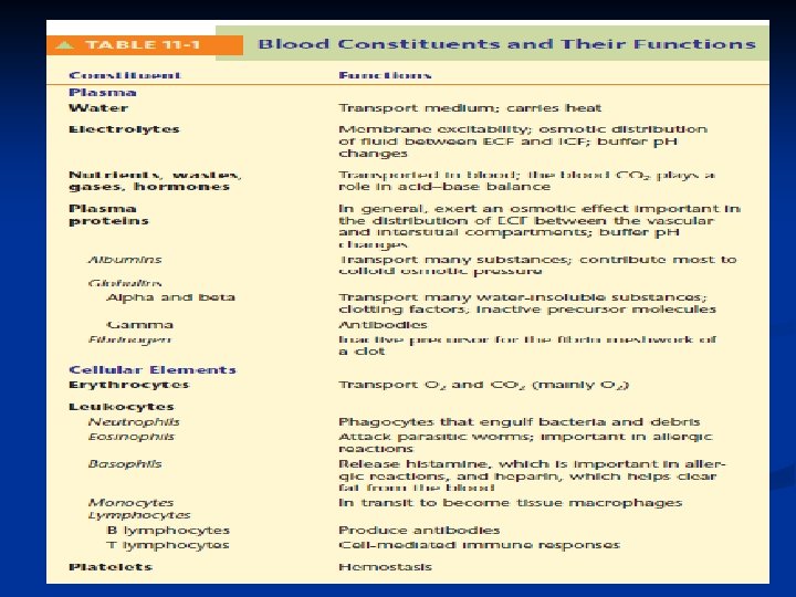 6. Defensive functions: White blood cells are responsible for defense of body Neutrophils, monocytes phagocytosis Lymphocytes Immunity Eosinophils Detoxification, disintegration , removal of foreign proteins