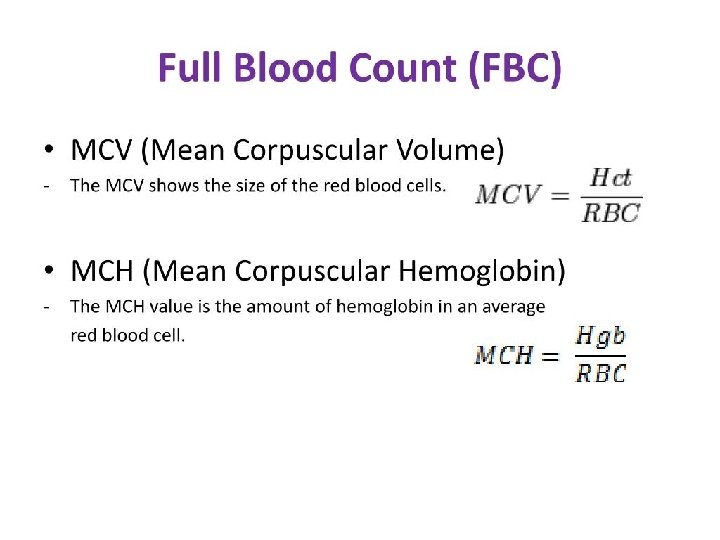 Anaemia Definition: Hb concentration below the normal level of the same age and gender. due to 1 - RBCs count below normal level for same age & gender. 2 - Hb load in each RBC (MCH) below normal level. .