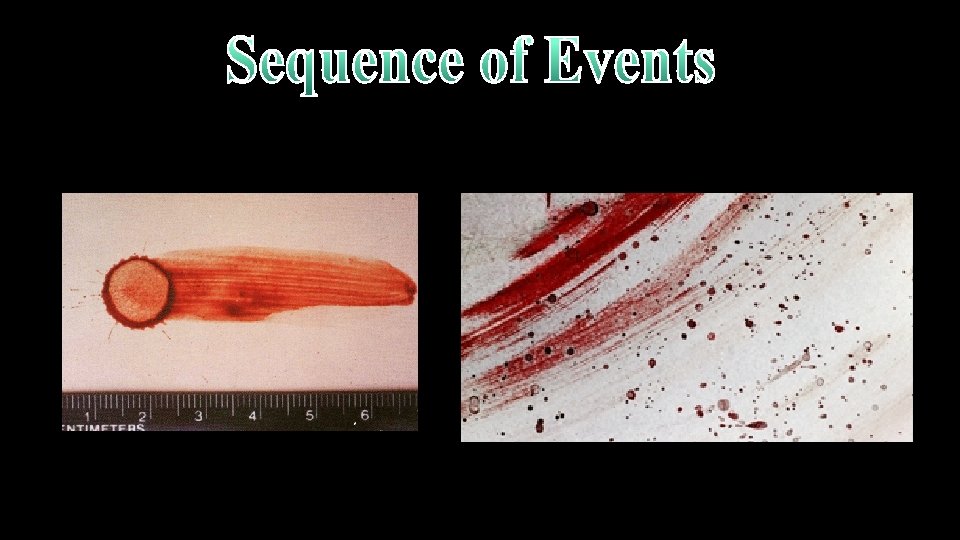 Blood Pools • Pools of blood form around a victim who is bleeding heavily and remains in one place • If victim is moved, • May appear to be droplets or swipes/wipes connecting first location to second