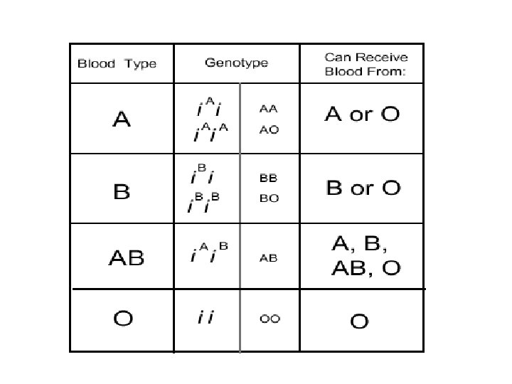 Problem 1 • A man has been taken to trial in a paternity suit by a woman who claims he is the father of her son. The man claims innocence. At the trial the expert witness disclosed the blood types of all three, as follows: – The Woman: Type A – The Man: Type B – The Child: Type O Could the man be the father of the child?