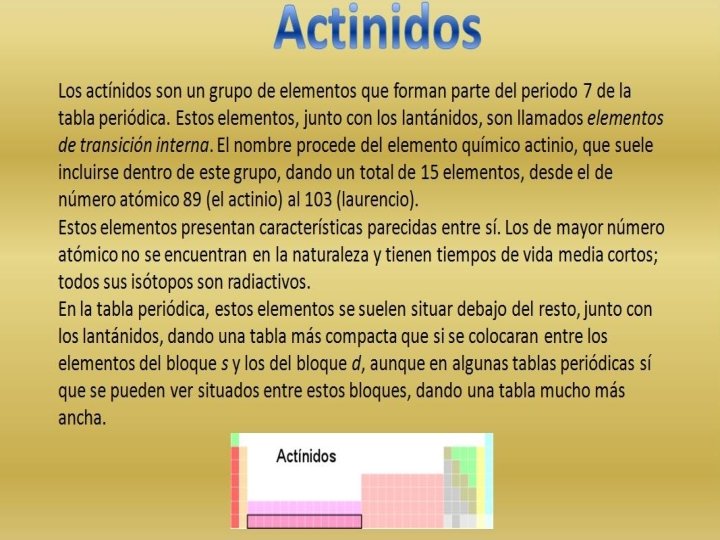 Lantanidos l l Grupo de elementos que forman parte del periodo 6 de la tabla periódica. Estos elementos son llamados tierras raras debido a que se encuentran en forma de óxidos. También se les conoce como elementos de transición interna. El nombre procede del lantano, que suele incluirse dentro de este grupo, dando un total de 15 elementos, desde el de número atómico 57 (lantano) al 71 (lutecio).