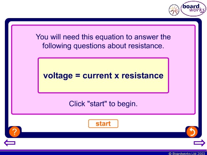 Experiment: How are current and voltage related as electricity flows through resistor? © Boardworks Ltd 2003