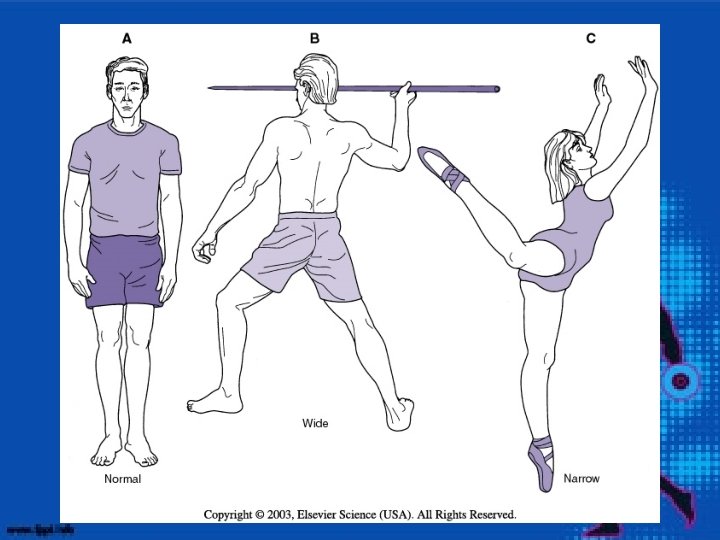 3 Major Concepts • 1) Base of support: The portion of the body in contact with the floor • 2) Broad base = stability