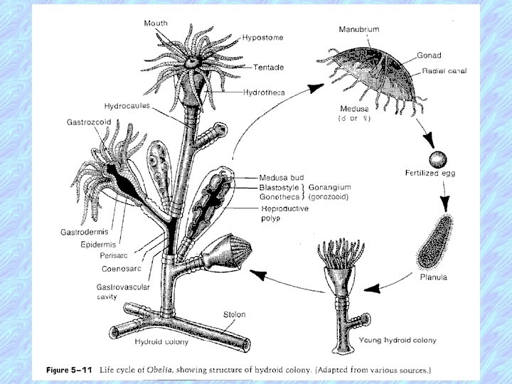 Morphology of Obelia 1. Classification – Class Hydrozoa (hydroids) 2. Habitat – lives in shallow coastal water attached to substratum + Morphology – – – exists in 2 distinctly different forms in its life colonial form (polyps) free living form (medusa)