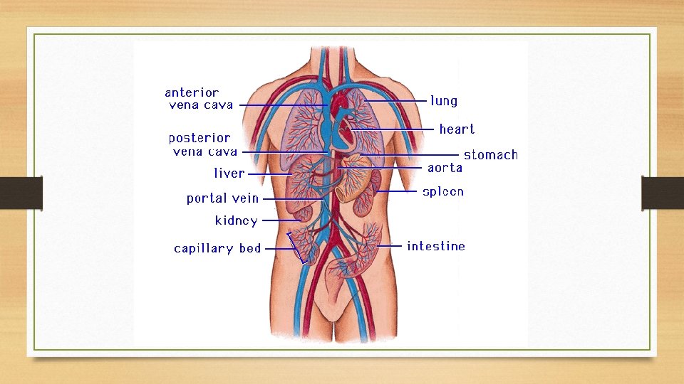 The Circulatory System: to deliver oxygenated blood to the various cells and organ systems in your body so they can undergo cellular respiration Major Organs and Their Functions Heart – the major muscle of the circulatory system -- pumps blood through its four chambers (two ventricles and two atria) -- pumps deoxygenated blood into the lungs, where it gets oxygenated, returned to the heart, and then pumped out through the aorta to the rest of the body Arteries – carry blood away from the heart and to the major organs of the body Veins – carry blood back to the heart away from the major organs of the body Capillaries – small blood vessels where gas exchange occurs -- valve regulate the flow of blood between the chambers Blood – the cells that flow through the circulatory system-- red blood cells contain Spleen – helps to filter out toxins in the blood
