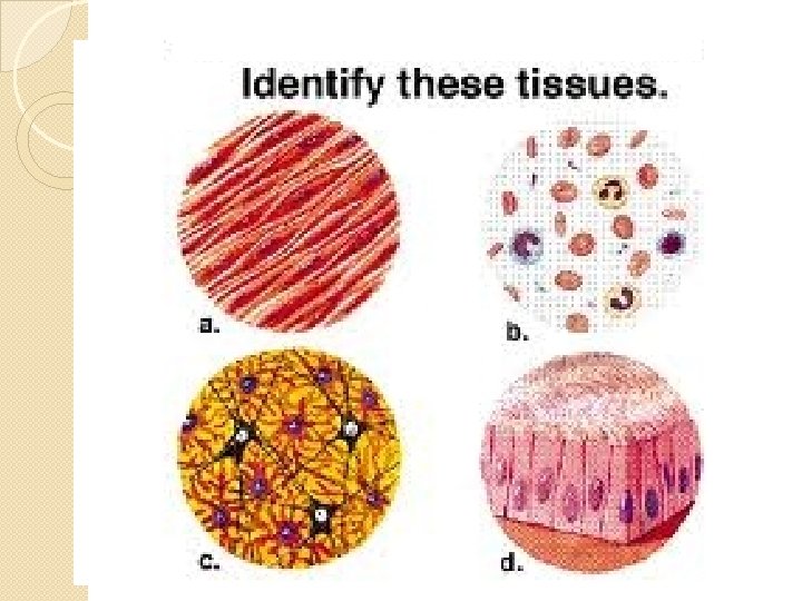 What are tissues? Cells are organized into groups and layers called TISSUES Each tissue is composed of similar cells that are specialized to carry on a particular function ◦ Secretion ◦ Absorption ◦ Support