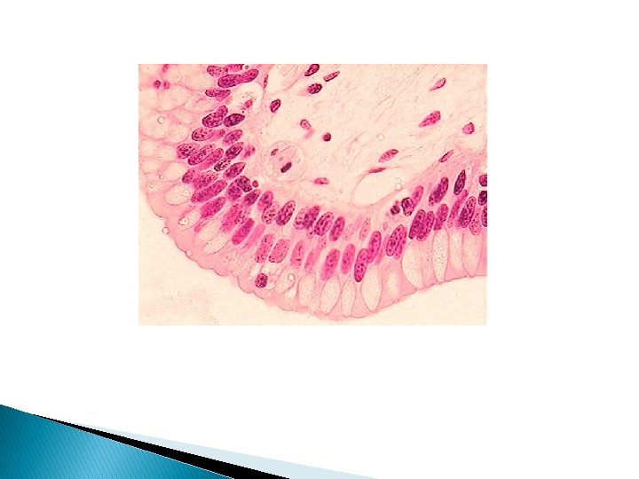 Stratified Columnar � Surface cells are columnar � Basal cells vary in size and shape. � Fairly rare in the body � Found mainly in the ducts of large glands.