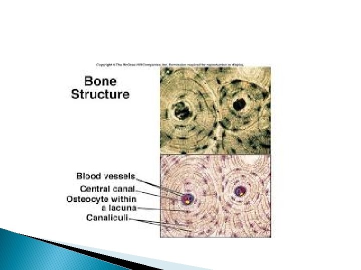 Bone � Osseous tissue � Composed of bone cells (osteocytes) sitting in cavities called lacunae � Surrounded � Protect by layers of a hard matrix and support other body organs