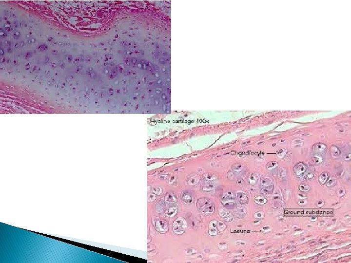 Hyaline Cartilage � Most � Less � Has widespread cartilage hard and more flexible than bone. abundant collagen fibers � Glassy � Found matrix in larynx, attaches ribs to breastbone, covers the end of bones where joints form.