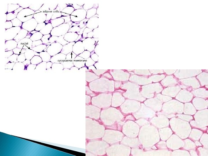 Adipose Tissue � Fat tissue � Oil occupies most of a fat cell’s volume and pushes the nucleus to the side � Forms subcutaneous tissue beneath the skin. � Insulates and cold. the body and protects it from heat