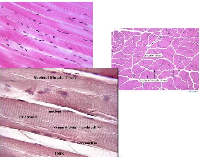Skeletal Muscle � Packaged skeleton. � Can by connective tissue sheets attached to the be controlled- voluntary � Form the flesh of the body � The result of their action is gross body movements or changes in facial expressions. � Cells are long, cylindrical, multinucleate, and have striations (stripes)