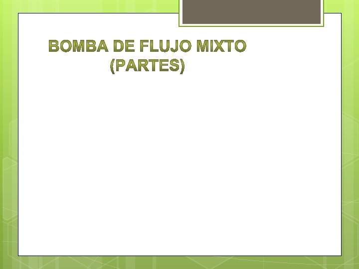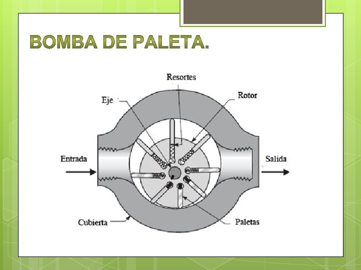 DE PISTÓN RECIPROCANTE DE INMERSIÓN DE DIAFRAGMA DESPLAZAMIENT O POSITIVO DE ENGRANES DE LÓBULO O ALABE ROTATORIA S DE PALETAS DE TORNILLO DE CAVIDAD PROGRESIVA DESPLAZAMIENTO NO POSITIVO (ROTO DINÁMICAS) FLUJO RADIAL (CENTRIFUGAS) FLUJO AXIAL (DE IMPULSOR) FLUJO MIXTO