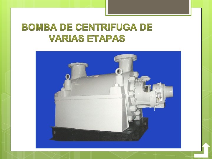 PRINCIPIO: EL LIQUIDO ES FORZADO A ENTRAR POR PRESION ATMOSFERICA U OTRA PRESION A UN CONJUNTO DE ASPAS ROTATORIAS QUE DESCARGAN A UNA PRESION SUPERIOR. BOMBAS CENTRIFUGA S CARACTERÍSTICAS: TAMAÑO REDUCIDO. CAUDAL CONSTANTE. PRESION UNIFORME. SENCILLEZ DE CONSTRUCCION, BAJO MANTENIMIENTO Y FLEXIBILIDAD DE REGULACION. APLICACIÓN: NECESIDAD DESEBADO PREVIO FUNCIONAMIENTO