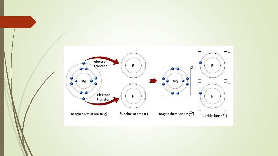 Ionic Bonding Ionic bonding is the electrostatic attraction between oppositely charge ions Recall that ions are charge particles which are formed when atoms gain or lose electrons Positive ions are formed by metallic elements by the loss of electrons Example – Magnesium, a group 2 element, loses 2 electrons from its valance shell to form a 2+ ion Negative ions are usually formed by non-metallic elements by gaining electrons Example – Oxygen, a group 6 element, gains 2 electrons to fill its valance shell forming a 2− ion