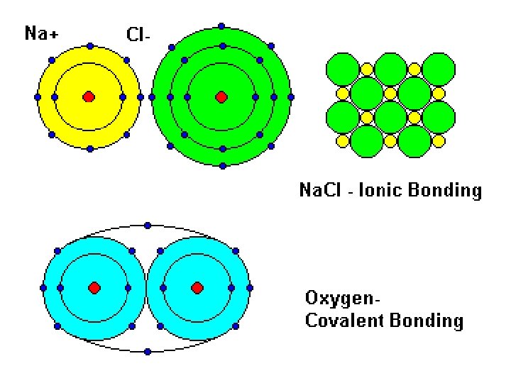 Ionic versus Covalent IONIC COVALENT Bonded Name Salt Molecule Bonding Type Transfer e- Share e- Types of Elements Metal & Nonmetals Physical State Solid, Liquid, or Gas Melting Point High (above 300ºC) Low (below 300 ºC) Solubility Dissolves in Water Varies Conductivity Good Poor