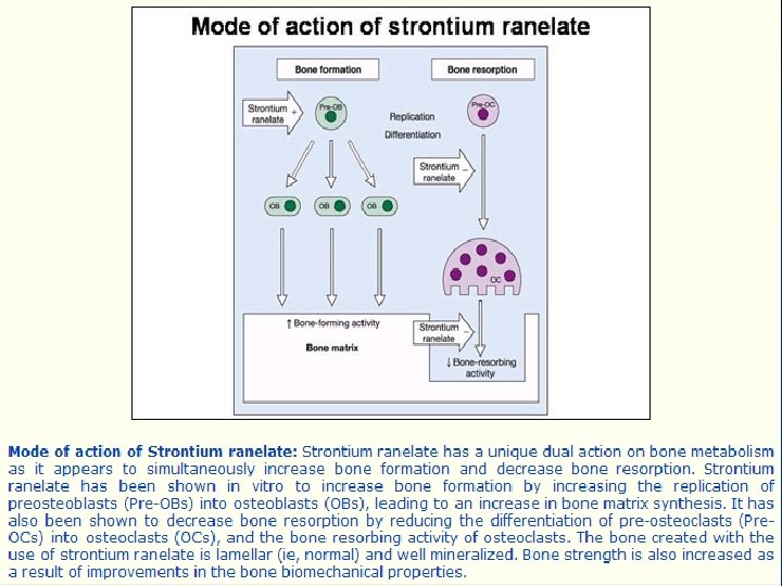 Medical treatment for osteoporosis Anti-resorptive agent n Estrogen n SERM Raloxifene (Evista) n Calcitonin n Bisphonate Alendronate (Fosamax) Risedronate (Actonel) Ibandronate (Bonviva) Anabolic agent n PTH (cyclic use) ( Bone formation) n Strontium ranelate ( Bone formation) ( Bone resorption)