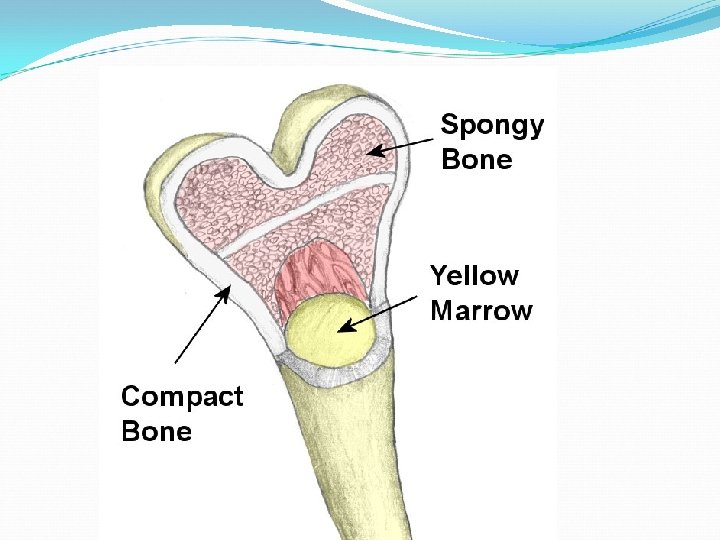 Medullary Cavity • In the diaphysis of the long bone deep to the compact bone is the medullary cavity. in an adult it is full of yellow bone marrow. • The medullary cavity is lined with endosteum.