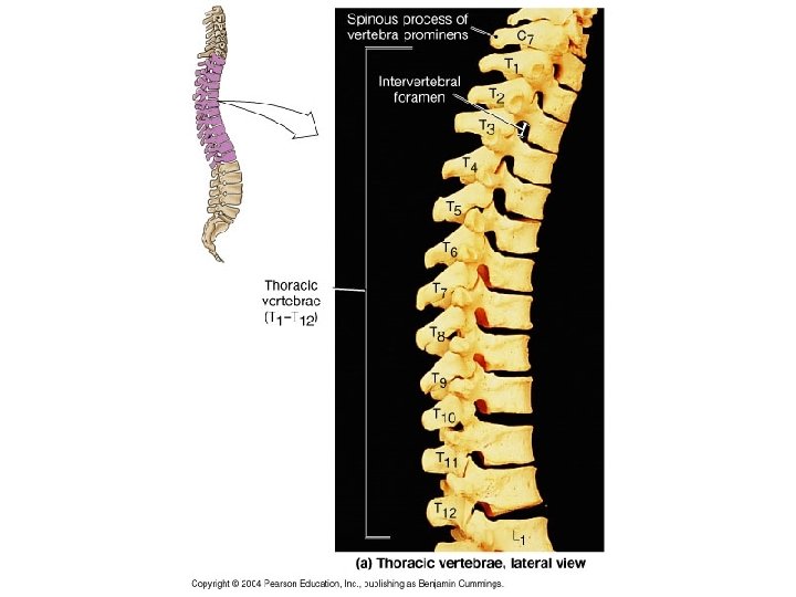 Thoracic vertebrae – 12 bones, (T 1, T 2, etc. ) - Have costal facets for attachment of ribs.