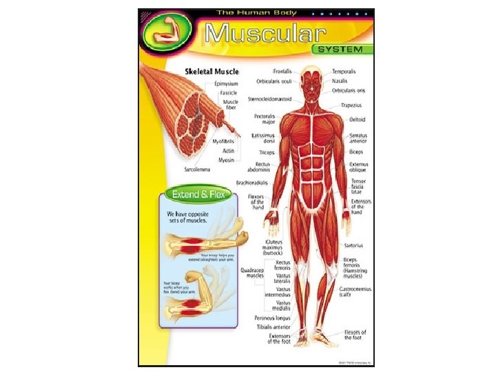How do muscles work? • Muscles can only contract • In order for movement to occur muscles must occur in pairs- one contracts while the other relaxes