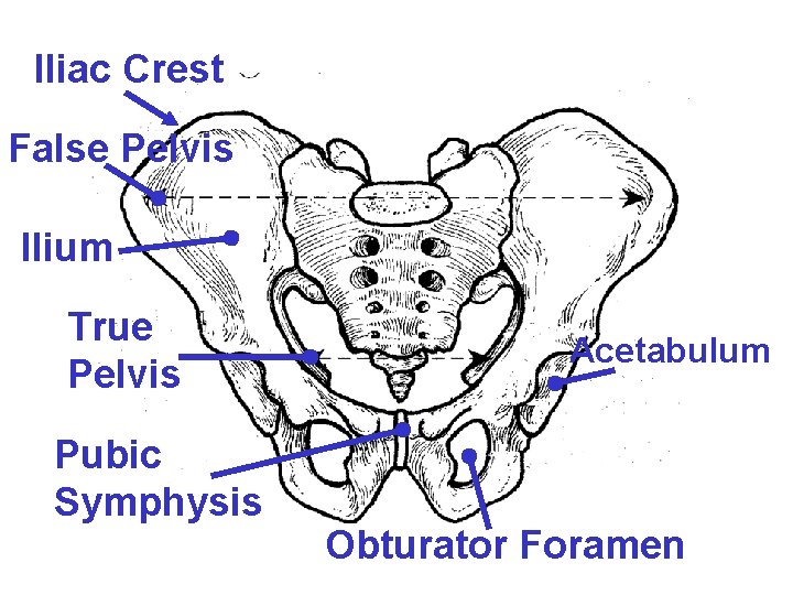 Iliac Crest False Pelvis Ilium True Pelvis Pubic Symphysis Acetabulum Obturator Foramen