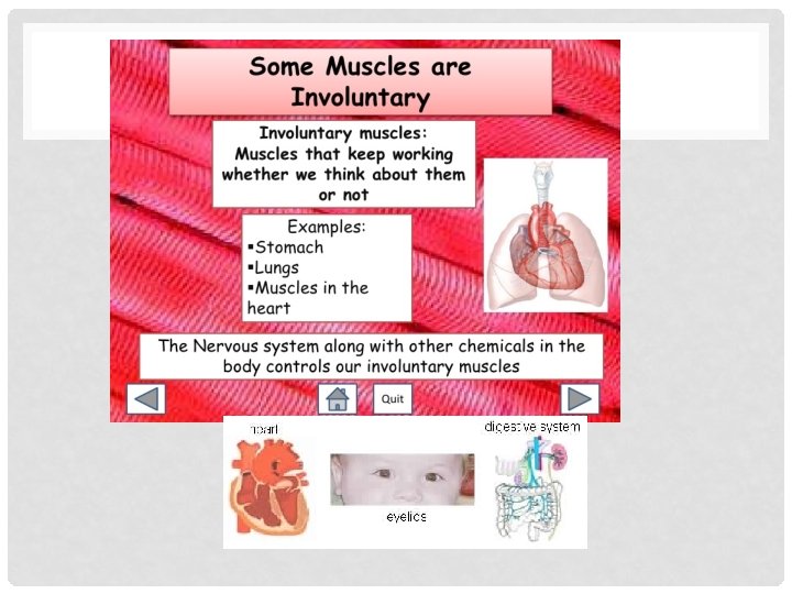 MUSCLES The human body contains more than 650 individual muscles which are attached to the skeleton, which provides the pulling power for us to move around. Voluntary – Involuntary -