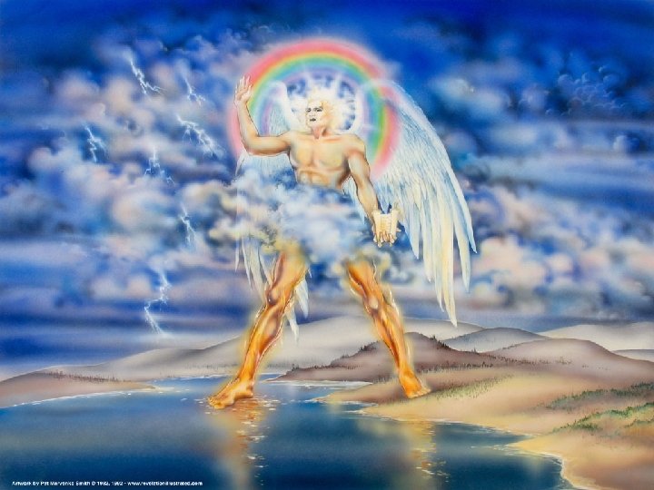 Another Angel • Picture #1—”the angel and the seven peals of thunder” • A description of the angel: – “Placed his right foot on the sea and his left foot on the land” – Mastery over all the earth; a universal message…