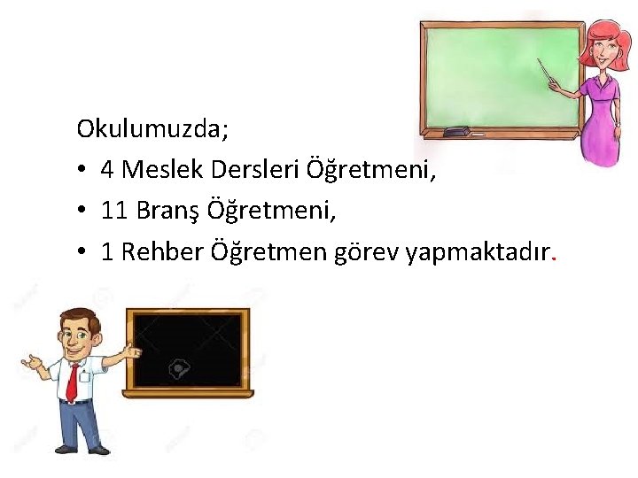 Okulumuzda; • 4 Meslek Dersleri Öğretmeni, • 11 Branş Öğretmeni, • 1 Rehber Öğretmen görev yapmaktadır.