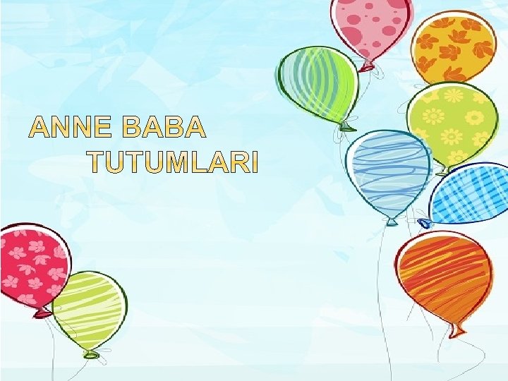 ANNE BABA TUTUMLARı Baskıcı ve otoriter tutum Gevşek tutum(çocuk merkezci aile) Dengesiz ve kararsız tutum Aşırı koruyucu tutum İlgisiz ve kayıtsız tutum Güven verici, destekleyici ve hoşgörülü tutum